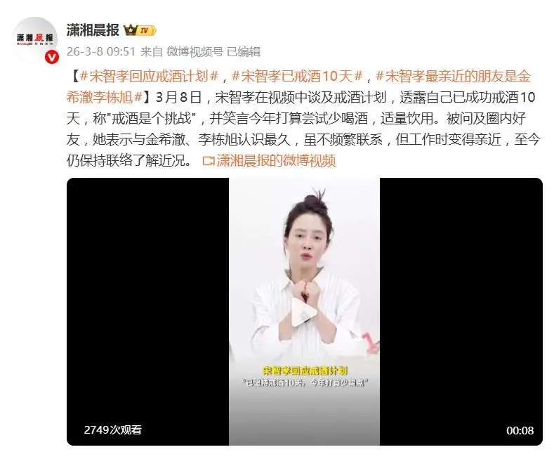 3月8日,宋智孝在社交平台更新视频,亲口透露自己已成功戒酒10天,并坦言“戒酒是个挑战”。她笑着调整了新年计划,表示“今年打算尝试少喝酒,适量饮用”。此话一出,立刻让熟悉她的粉丝和网友大跌眼镜——这还是那个把“戒掉绝对不行”挂在嘴边的宋智孝吗?