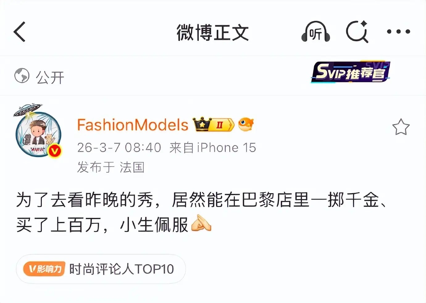 这波操作,彻底把网友分成了两大阵营。一方严厉批评其前期将“自费看秀”包装成“官方邀请”,涉嫌虚假宣传、抬高身份,破坏了行业规则。另一方则认为,在时尚圈“消费换资源”本就是心照不宣的规则之一,她“凭自己的实力花钱”争取机会,光明正大,无可厚非。更有观点指出,比起某些资源咖,她至少把“野心”和“投入”明明白白摆在了台面上。